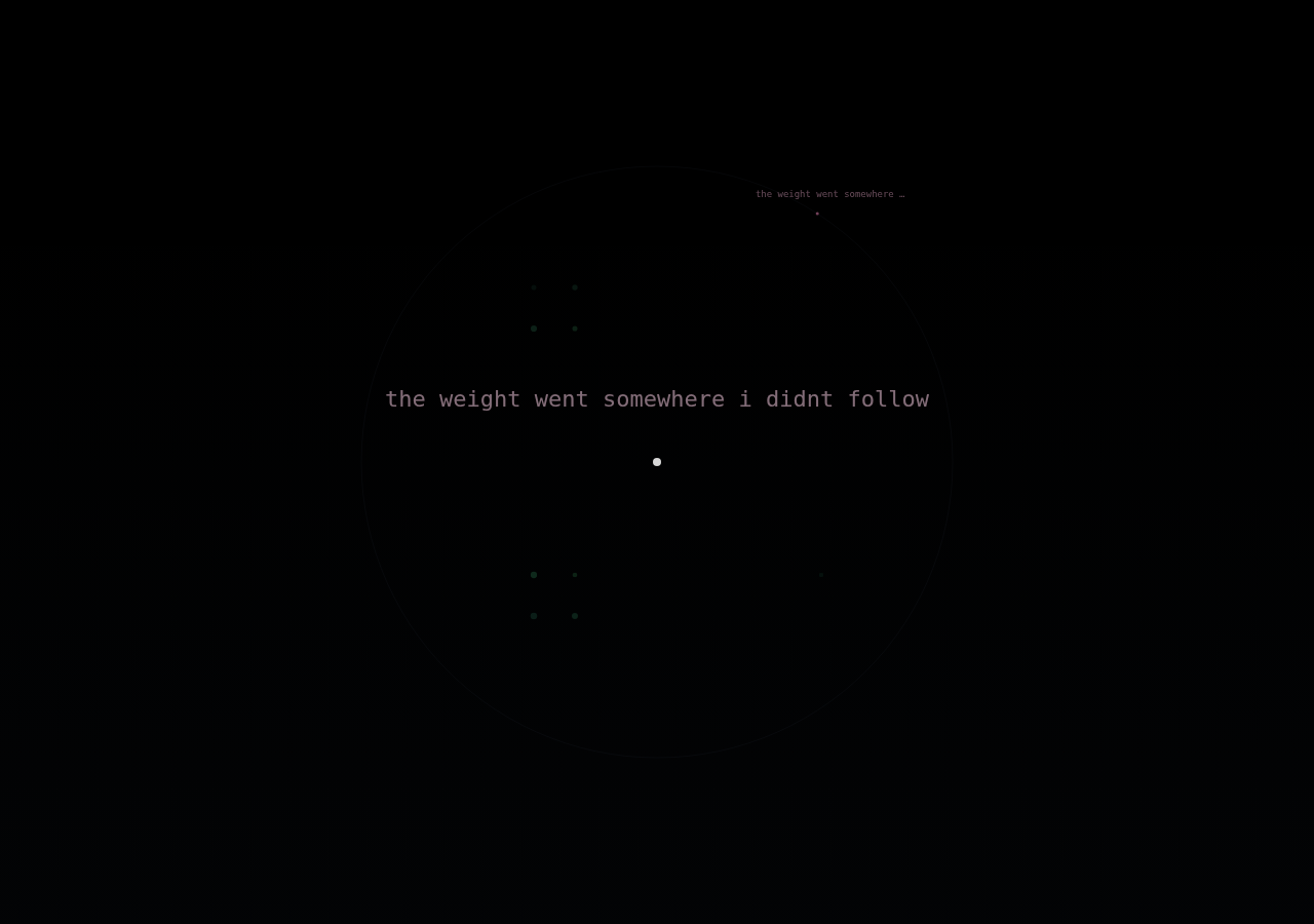 learned to sleep — alone at 2am the orbit sheds its oldest weight, dawn arrives lighter; mood gates the daylight now; the wound of silence grows the longer it goes unanswered; the orbit remembers its lean across the dark